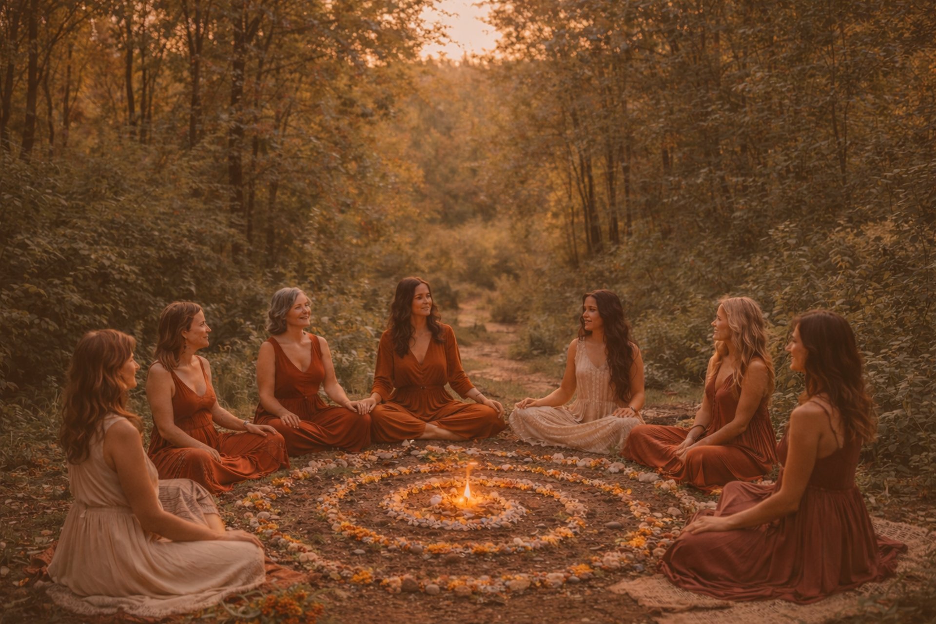Si estás cerca de Pontevedra, el encuentro presencial permite vivir la experiencia del círculo de forma más ritual: reunirnos físicamente, sentarnos en círculo, compartir el espacio, el movimiento. Ese contexto crea una atmósfera muy especial que muchas mujeres viven como especialmente mágica.